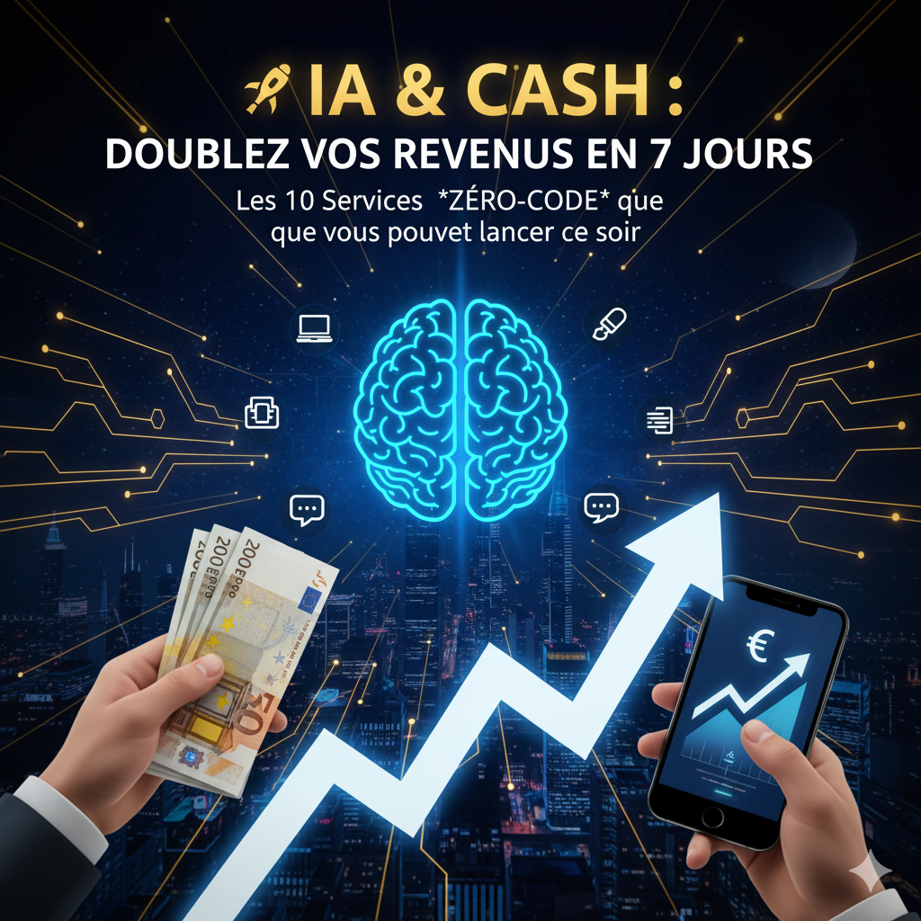 Cet Ebook n'est pas une théorie, c'est votre feuille de route ZÉRO-CODE pour transformer l'Intelligence Artificielle en revenu actif et passif dès cette semaine.